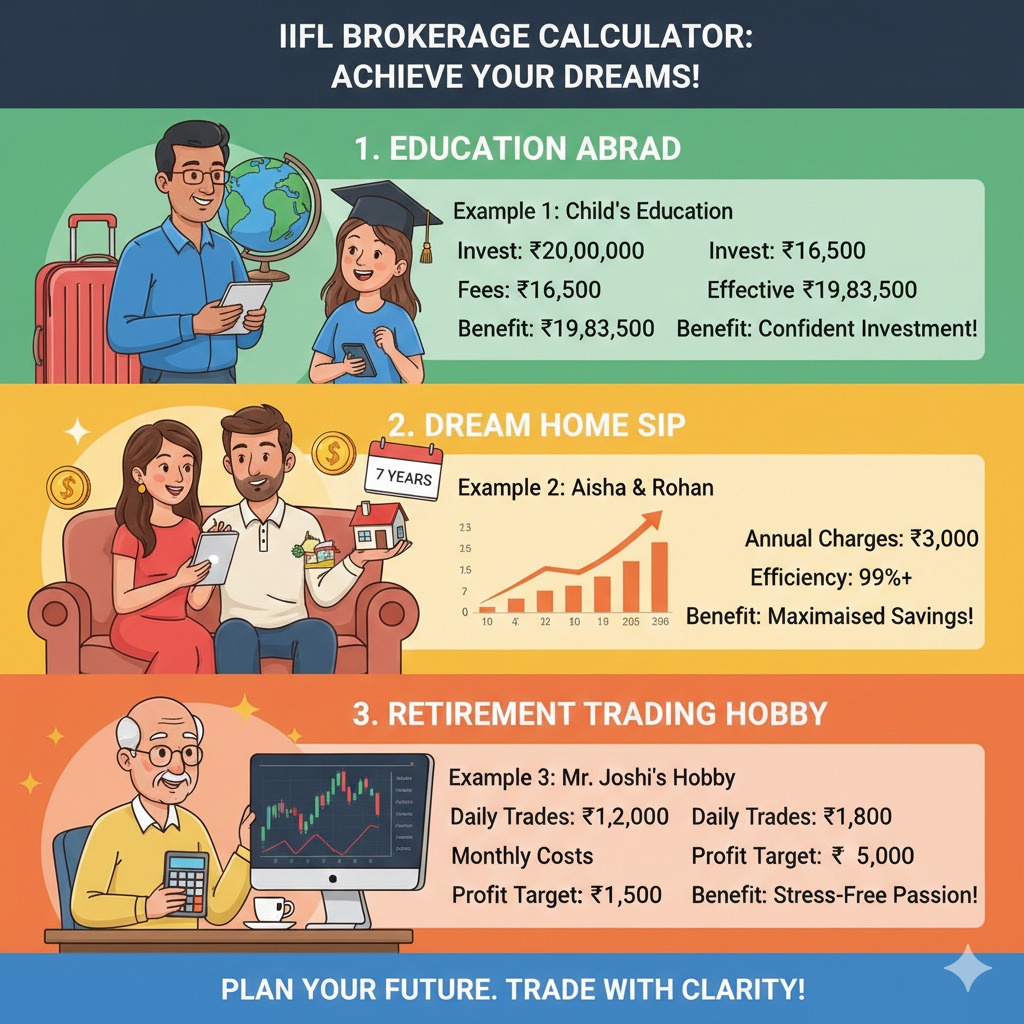 This IIFL Brokerage Calculator isn’t just for adding up fees. It gives you clear information before you trade, so you can turn your plans into real, cost-effective results. With this tool, you can invest and trade confidently and stay in control.