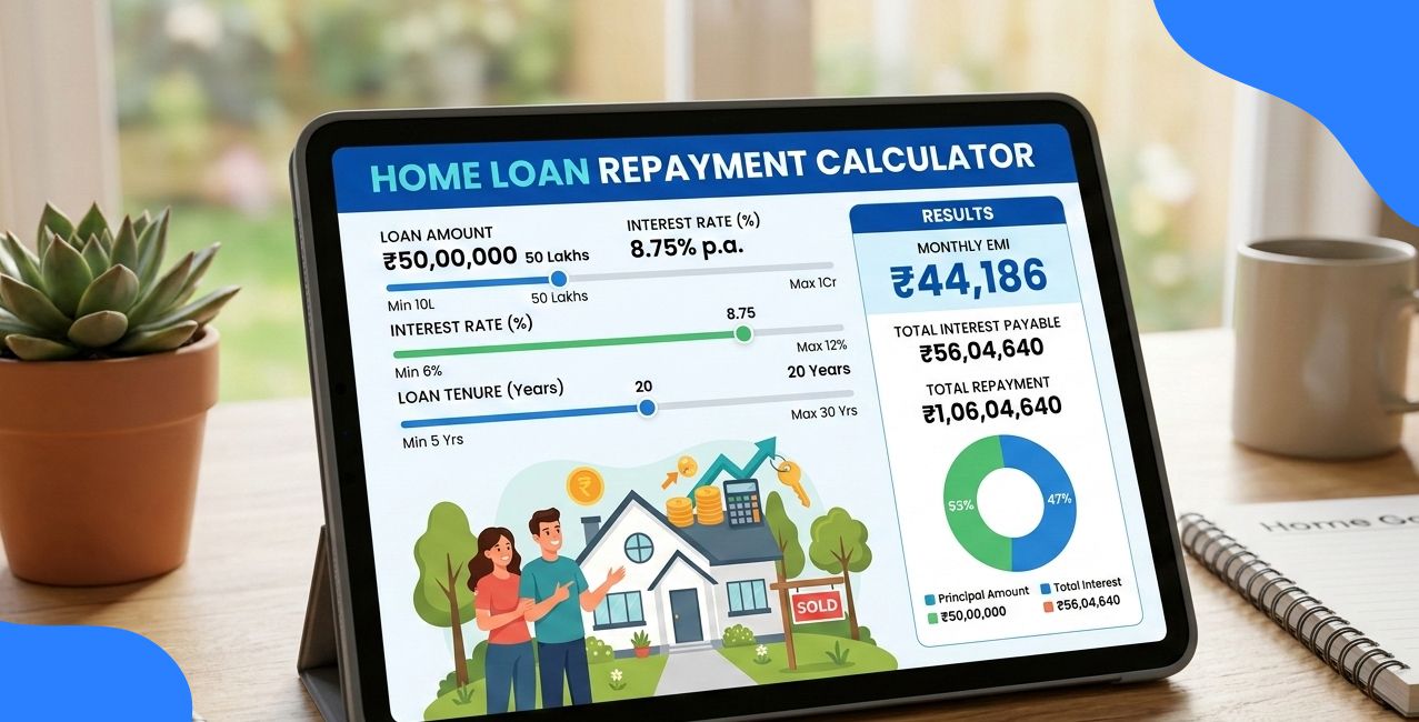A home loan repayment calculator makes borrowing decisions easier by showing EMI, interest, and total repayment in advance. You can feel more confident, avoid long-term financial stress, and manage your home loan when borrowers plan early using real numbers.