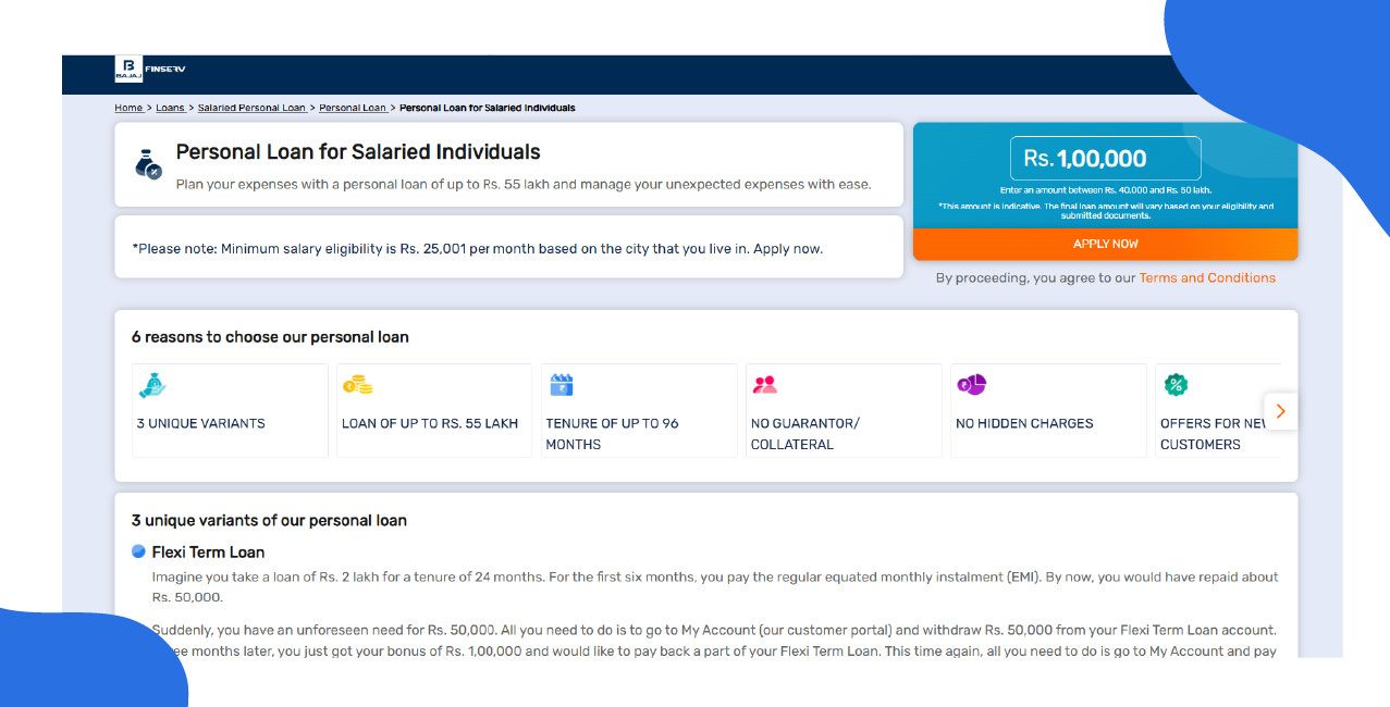 Three Different Loan Options Available: Bajaj Finance Personal Loan offers three distinct loan types. You can choose Term Loan, Flexi Term Loan, or Flexi Hybrid Loan. Each option suits different financial needs and repayment preferences.