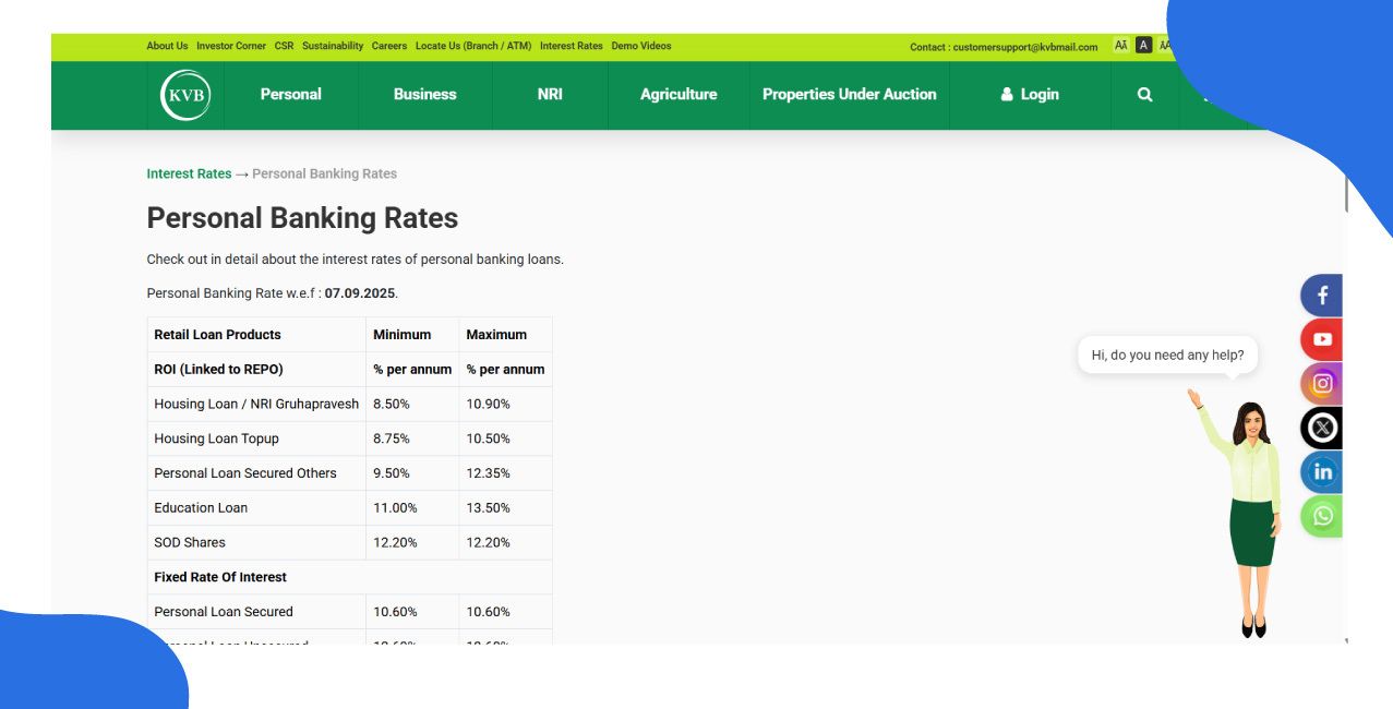 Finding the right personal loan requires careful research and comparison. Karur Vysya Bank offers various loan options for different customers. Interest rates vary based on loan type and borrower profile. Smart borrowers compare all available options before making decisions. Karur Vysya Bank provides competitive rates across multiple loan categories.