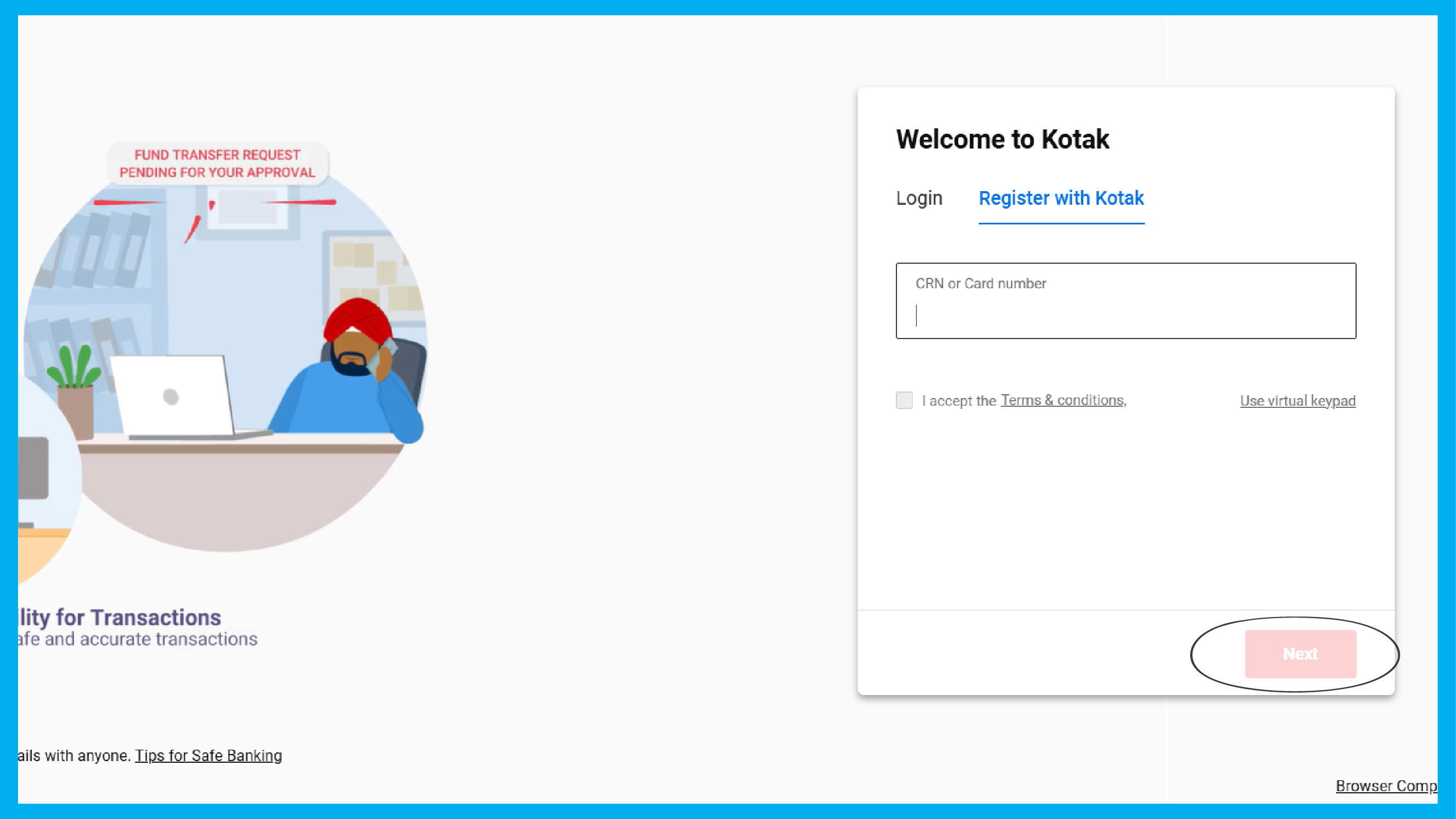 There are three great ways to register for Kotak Mahindra banking: app, debit card details, and physical request. Here are a few step-by-step guides for registration: