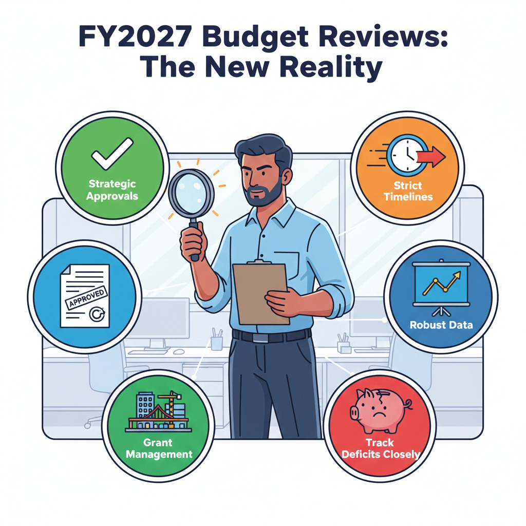 FY2027 budget reviews are now more about approvals, timelines and defensible numbers than big announcements. Finance committees are likely to keep pushing for tighter tracking of deficits, grants and project readiness.