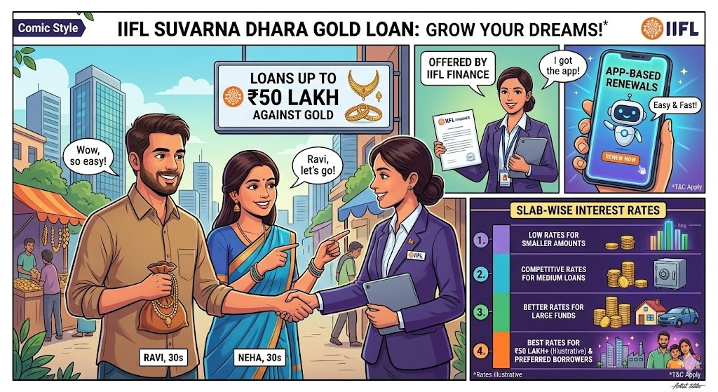 IIFL Finance has rolled out Suvarna Dhara Gold Loan, offering loans up to ₹50 lakh against gold, with app-based renewals and slab-wise interest rates.