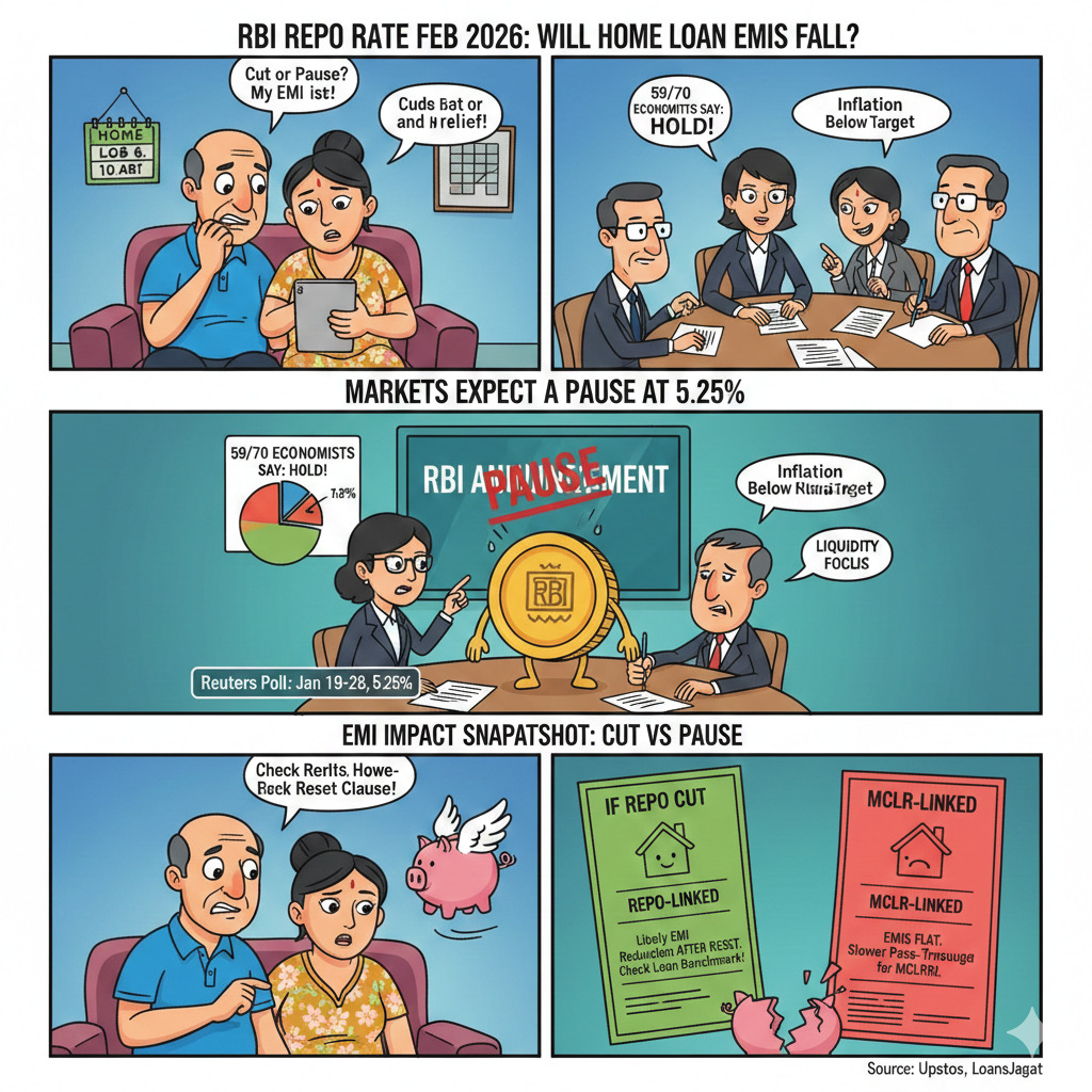Markets expect a February pause at 5.25%, but home loan EMIs may not soften quickly. Transmission, reset dates, and refinancing options will decide relief.