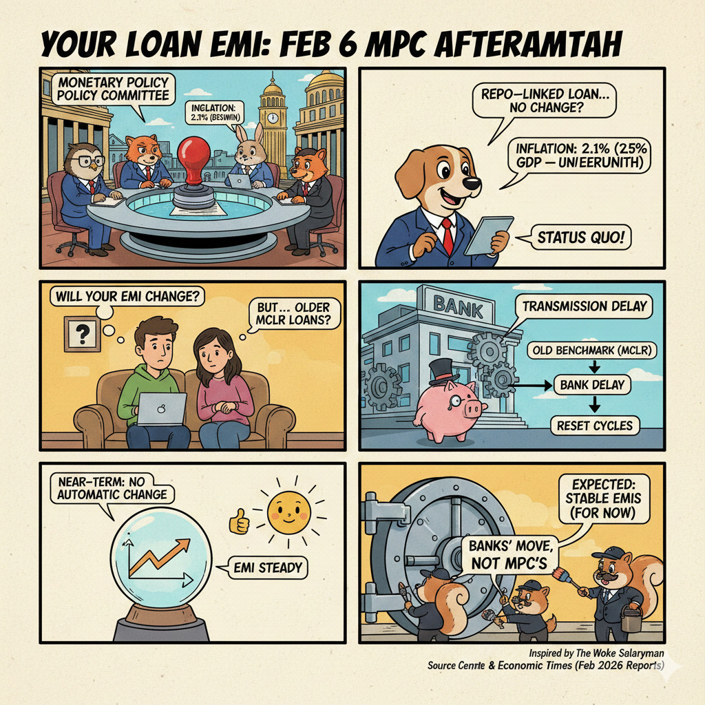 Since the repo rate stayed unchanged, repo-linked floating-rate borrowers are unlikely to see an automatic EMI reset immediately after 06 February 2026. The Economic Times also flagged that EMIs on repo-linked home loans are expected to remain steady after the decision.