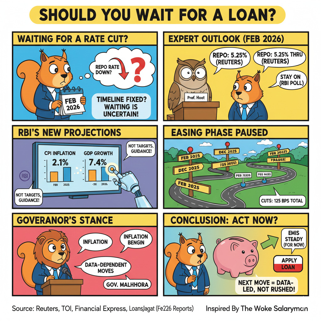 If the purchase timeline is fixed, waiting only for a possible cut looks uncertain. A LoansJagat report dated 05 February 2026 said economists polled by Reuters expected the repo rate to stay at 5.25% through 2026, after cumulative cuts of 125 bps since February 2025.